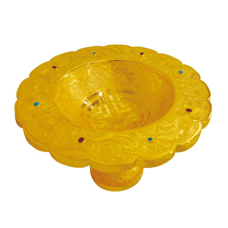 老鳳祥首飾文化節(jié)首次展出的“御用鑲寶金餐具”,這是其中的餐具之一。