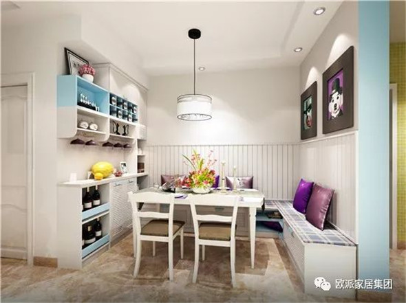藍(lán)白色的有趣碰撞,轉(zhuǎn)角卡座的餐廳定制,特別適合小戶型,因?yàn)榭ㄗ撞窟可進(jìn)行收納。整面墻壁餐邊柜,各種物件都可以收納哦。