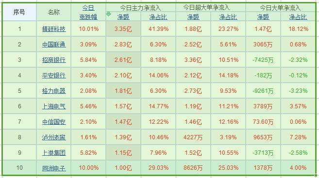 從今日個(gè)股資金凈流入情況來(lái)看,精研科技主力資金凈流入3.35億,居個(gè)股凈資金流入首位,其次是中國(guó)聯(lián)通主力資金凈流入2.83億,招商銀行主力資金凈流入5.84億,平安銀行主力資金凈流入2.10億,格力電器主力資金凈流入1.81億。從市場(chǎng)資金流向來(lái)看,主力資金重要流向銀行、釀酒等板塊,個(gè)股方面,主力資金凈流入,后市有望繼續(xù)沖高。