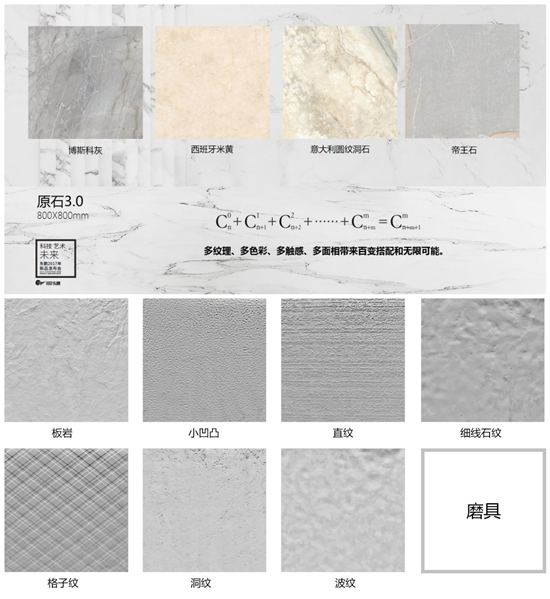 片片不同:滲透墨水形成的紋理,片片不同,層次豐富,細(xì)膩多變的色彩。搭配空間自然連貫,色彩豐富。值得關(guān)注的是,由2016年發(fā)布的原石2.0+升級(jí)至900規(guī)格,提供更多元的生活需求。