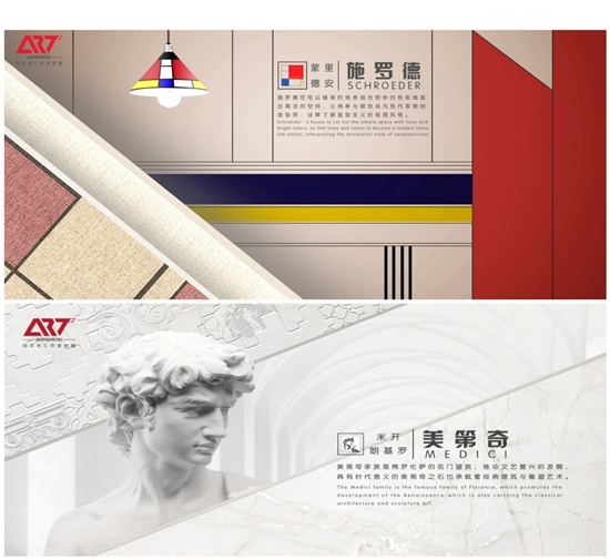 東鵬ART+以“生活藝術(shù)化”為設(shè)計(jì)理念,研發(fā)推出獨(dú)樹一幟的十大藝術(shù)家系列產(chǎn)品,將全球藝術(shù)家的藝術(shù)之美和生活態(tài)度融匯其中,以現(xiàn)代國(guó)際化設(shè)計(jì)重新詮釋經(jīng)典藝術(shù),同時(shí)聚集了全球先進(jìn)的工藝技術(shù)和世界頂級(jí)材質(zhì),打破傳統(tǒng)的瓷磚形象,給視覺和心靈帶來(lái)一場(chǎng)藝術(shù)盛宴,使拉斐爾的典雅輕奢、安迪沃霍爾的獨(dú)特創(chuàng)新、梵高的熱情奔放、大千居士的禪韻意境、達(dá)芬奇的典雅時(shí)尚成為國(guó)際流行的設(shè)計(jì)元素,詮釋極致的生活態(tài)度。