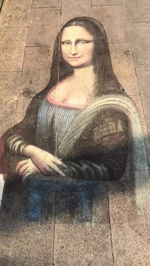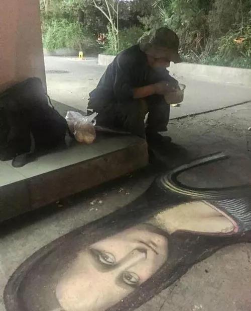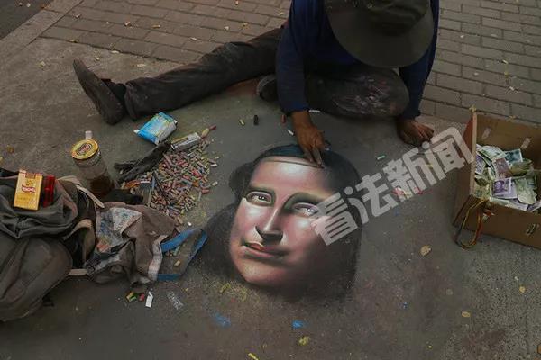 網(wǎng)上搜了下,流浪藝人在街頭地上畫畫,全國(guó)很多地方都有,畫得最多的就是《蒙娜麗莎》。2016年1月南京玄武湖隧道公交站。2015年4月10日傍晚金華西市街天橋附近。2014年8月24日哈爾濱市街頭……