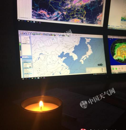 9日,由于修路,二道白河小鎮(zhèn)出現(xiàn)了大范圍的停電,長白山氣象局也在停電的范圍內(nèi),在沒有照明設(shè)備的條件下,氣象臺的工作人員點起了蠟燭,在點點燭光下,為正在增雨作業(yè)的同事們保障著后方最有利的支援,盡最大努力確保此次增雨作業(yè)的成功。