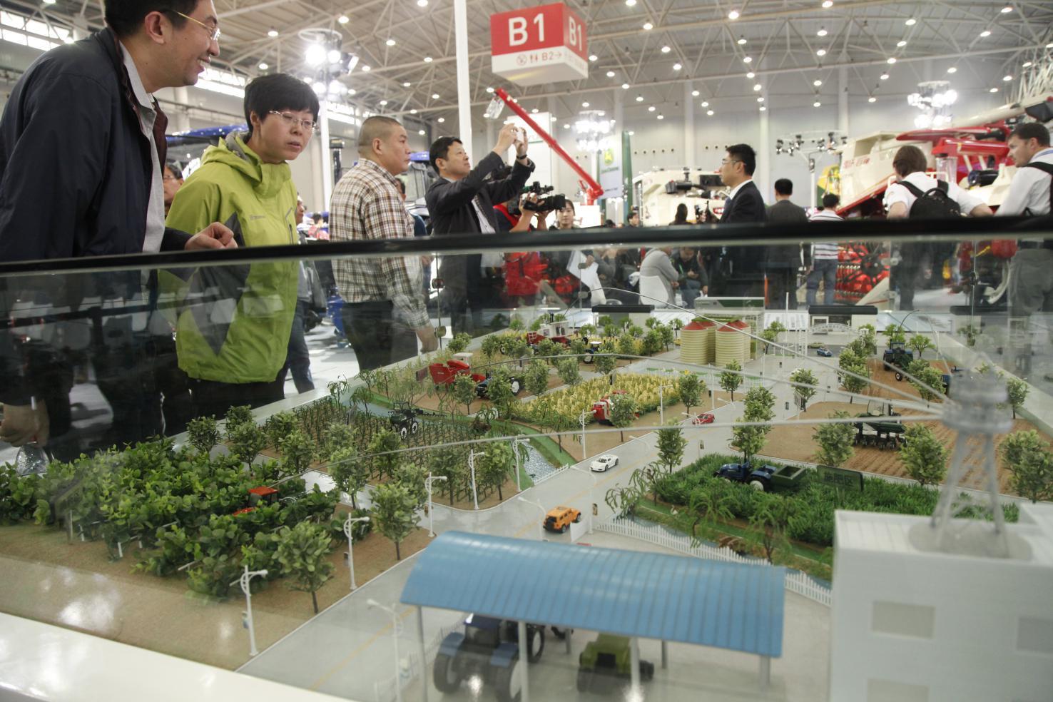 用戶認真觀看雷沃阿波斯精準農業示范農場沙盤