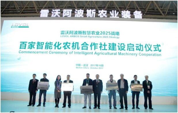 10月26日,雷沃阿波斯智慧農業2025戰略暨百家智能化農機合作社建設啟動儀式在2017中國國際農業機械展覽會期間舉行。農業部農業機械化管理司、農業機械實驗鑒定總站、農業機械化技術開發推廣總站、中國農業機械工業協會、中國農業機械流通協會、中國農業機械化協會及雷沃阿波斯農業裝備有關領導及行業專家參加了啟動儀式。