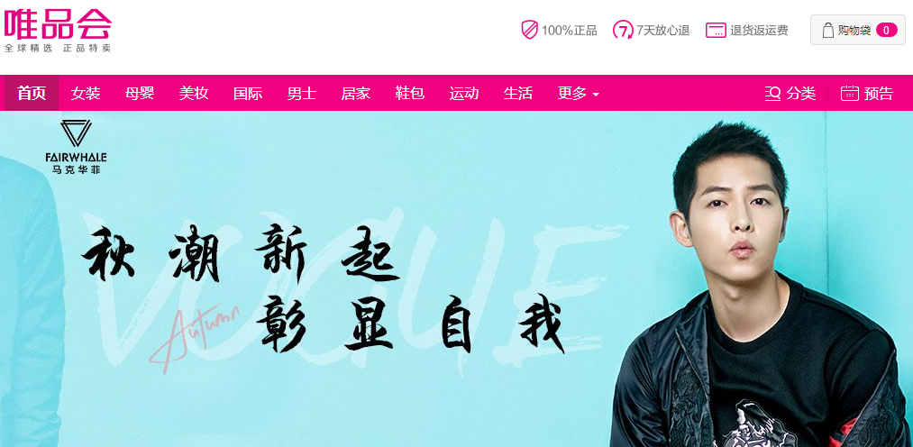 唯品會(huì)馬克華菲FAIRWHALE男裝專(zhuān)場(chǎng) 秋潮新起彰顯自我