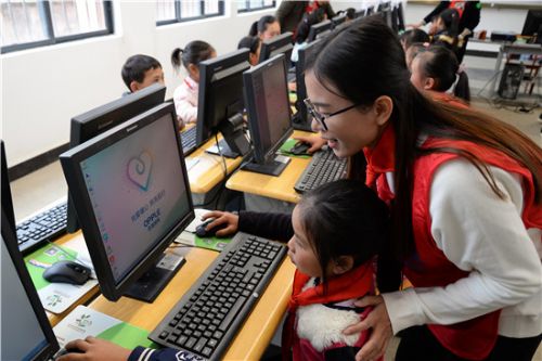 歐普照明志愿者通過電腦課與孩子們積極互動