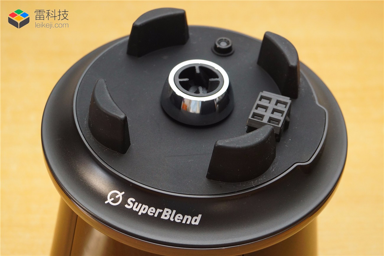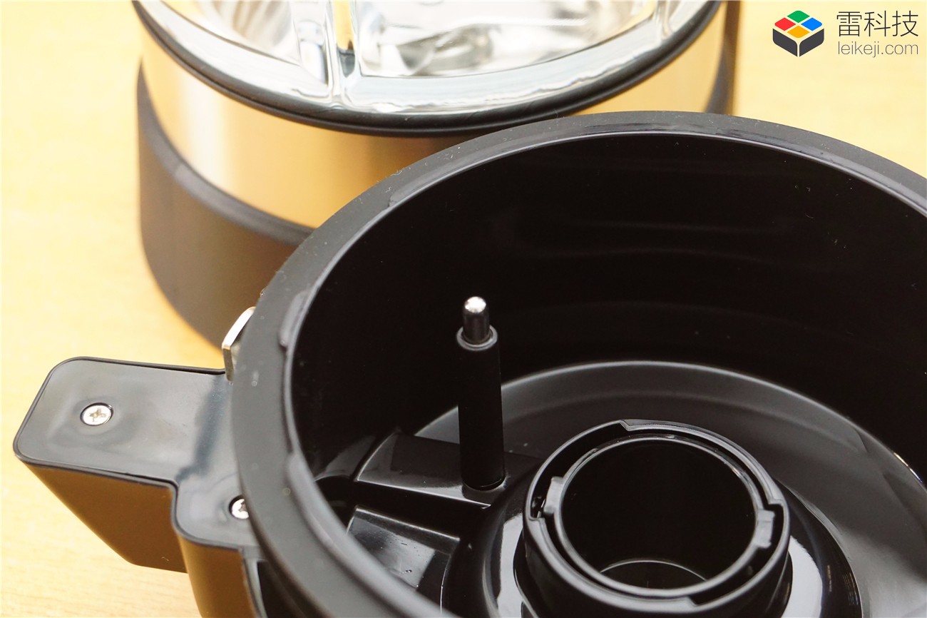 其頂部上帶有和研磨杯刀頭連接的傳動卡口,采用不銹鋼材質(zhì)包裹,工藝細膩,內(nèi)部安裝有德國進口電機,最高轉速達到40000轉/分,這是保證食材研磨充分細膩的一個關鍵因素,另外在上部杯體連接區(qū)域還采用了硅膠墊的設計,從而起到緩沖、防刮花的作用。