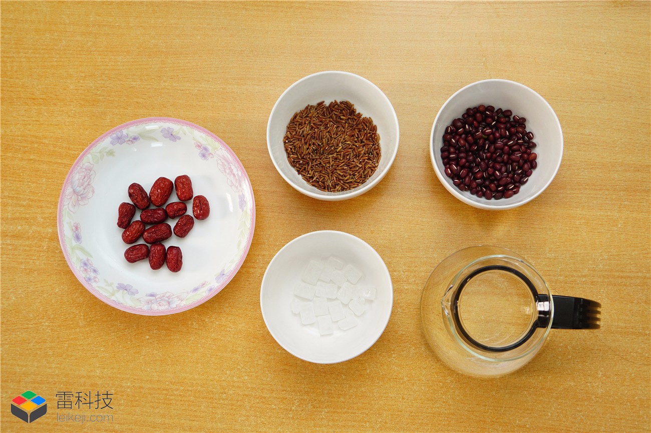接著再來做一道更加復雜的飲品:紅豆紫米漿,這款飲品在功能上使用“五谷漿”選項,其除了設計到“研磨”外,還需要“熬煮”,所以也可以考研下這臺機器在“熬煮”方面的技術。其中使用的食材有:紅棗、紫米、紅豆、冰糖、水。