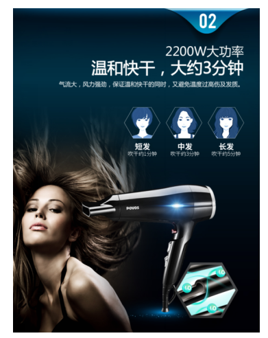 然而,如果一個電吹風能達到快速干發(fā)、還不傷發(fā),還能在吹發(fā)的時候來一個溫柔的養(yǎng)護,這樣的黑科技能不能讓你重拾人生的希望呢?POVOS奔騰的新品PH9802L就自帶這個逆天的黑科技,就像是秀發(fā)的守護騎士,守護著妹子的秀發(fā)美麗而不受傷害。