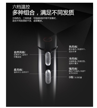 多種組合,滿足不同發(fā)質(zhì)需求。奔騰PH9802L擁有三檔熱力和兩檔風速,高達6種不同組合的吹發(fā)方式,各種發(fā)質(zhì)盡管來,吹不滿意算我輸!還有一鍵切換冷風功能,發(fā)型定型就如此簡單,在夏天還能免受熱風的煎熬。