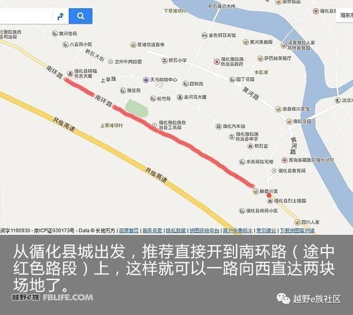從循化縣城前往兩塊場地,首先經(jīng)過的是撒拉爾紅谷越野體驗場地,所以先介紹到這里的路線。撒拉爾紅谷的GPS坐標(biāo)為北緯35°85'''''''' 35\