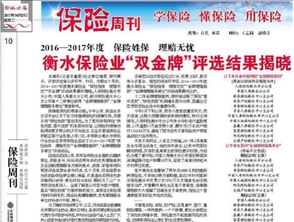 上圖為華夏保險衡水中支榮獲衡水保險業“金牌理賠服務單位”榮譽稱號報道截圖