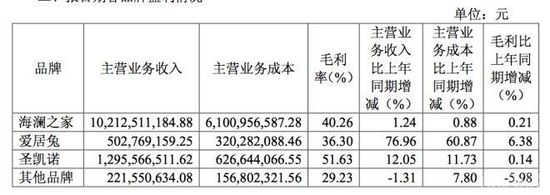 目前,海瀾之家旗下除有同名品牌海瀾之家外,還有愛居兔、圣凱諾等服裝品牌,旗下圣凱諾品牌為職業(yè)裝團(tuán)購(gòu)業(yè)務(wù),其余品牌采用服裝連鎖經(jīng)營(yíng)的形式,產(chǎn)品包括男裝、女裝、配飾等。而按銷售貢獻(xiàn)來算,同名品牌海瀾之家仍占大頭,期內(nèi),以102.12億元的營(yíng)收,貢獻(xiàn)了總營(yíng)收的81.84%。