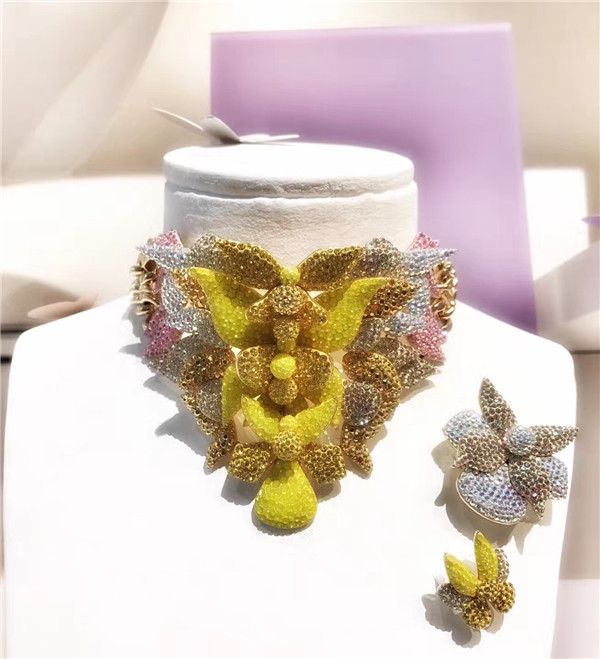 本季推出的創(chuàng)意總監(jiān)系列以品牌特有的切割及鑲嵌技術,加入創(chuàng)意的設計,為整個2018春夏系列注入了新的活力。閃亮迷人的施華洛世奇仿水晶、大膽前衛(wèi)的輪廓線條與精湛的工藝技術皆是該系列的特色。那些繁復精致的鑲嵌手法、時尚造型的花朵以及彩色立體的蘭花裝飾,各種充滿匠心的美好細節(jié)都讓人無法移開視線。