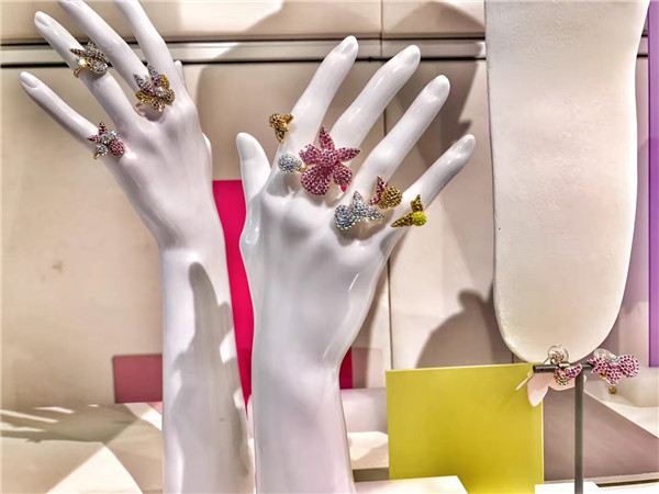 本季,夸張吸引眼球的首飾系列和雞尾酒戒指繼續(xù)大行其道,富有女性優(yōu)雅的設計也一如既往席卷著時尚界,而以疊搭的方式佩戴多件小巧精致的首飾不僅看起來優(yōu)雅大方,也更添時尚感。2018春夏彩虹天階(RainbowParadise)系列將多樣的元素相融合,以自然圖案打造現(xiàn)代時尚,那些用閃亮和諧的色彩組合成的蝴蝶、小巧精致的蜜蜂、充滿神秘色彩的蛇型,與簡潔流暢的自然線條、流蘇裝飾,不對稱設計等,皆展現(xiàn)了新一季的璀璨魅力。