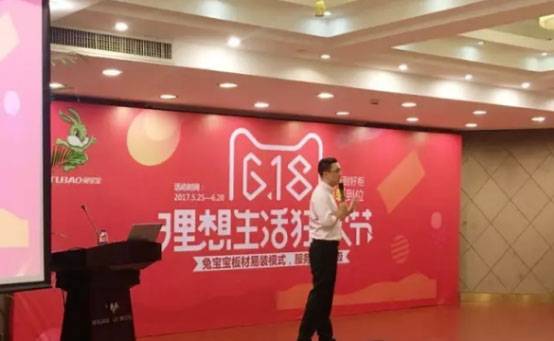 易裝O2O服務(wù)勢(shì)必會(huì)為拉動(dòng)銷售業(yè)績(jī)帶來積極的作用。兔寶寶電商部經(jīng)理項(xiàng)亮亮為此次到來的經(jīng)銷商闡述了此次兔寶寶板材易裝618活動(dòng)的具體方案和流程。
