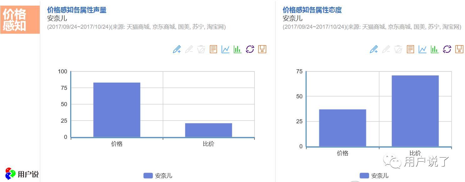 從數(shù)說(shuō)故事的價(jià)格屬性和態(tài)度來(lái)看,消費(fèi)者對(duì)安奈兒產(chǎn)品的價(jià)格滿意度并不高,從消費(fèi)者的評(píng)價(jià)中可以看到價(jià)格小貴、價(jià)格偏貴、不值這個(gè)價(jià)等,用戶說(shuō)品牌體檢師認(rèn)為安奈兒應(yīng)該注重品牌價(jià)格體系的調(diào)整,并且不斷提高產(chǎn)品品質(zhì),提升產(chǎn)品的性價(jià)比,促進(jìn)品牌美譽(yù)度的提升。