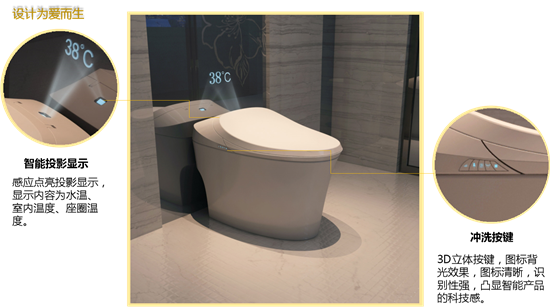 人年紀(jì)大了,視力難免會(huì)有所衰退。當(dāng)你近距離靠近法恩莎F1智能座便器時(shí),它能自動(dòng)打開(kāi)翻蓋,開(kāi)啟投影燈光顯示,將水溫、室內(nèi)溫度以及座圈溫度清晰地投影到背部的墻面上,即使在夜間,色弱或者視力較弱的中老年人都能清晰地識(shí)別。