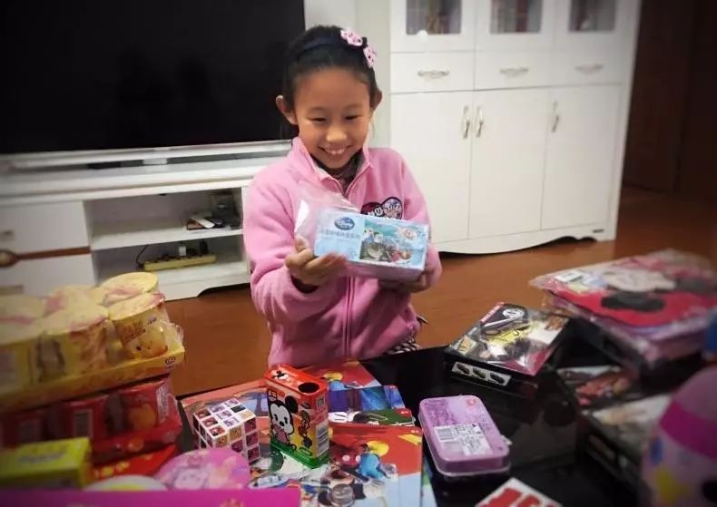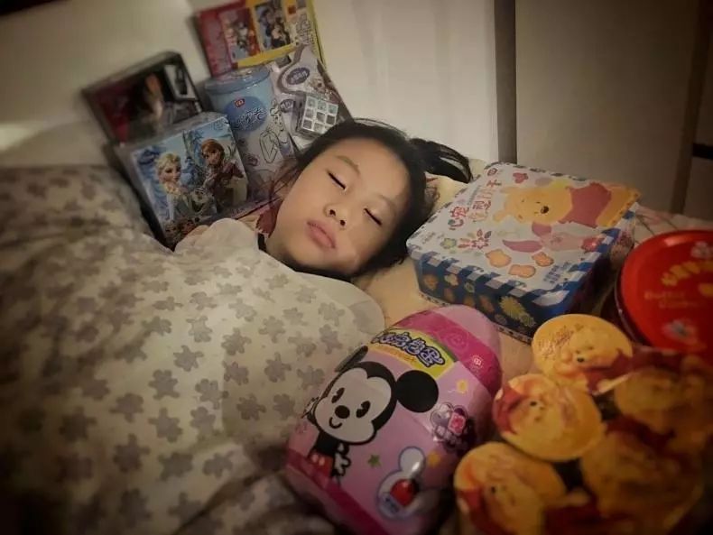 回家之后,女兒在自己的房間里已經睡了。李爸爸打開燈,躡手躡腳的把這些迪士尼的玩具、零食一樣樣的給女兒擺放起來,希望她第二天一早醒來,能夠有個小驚喜。