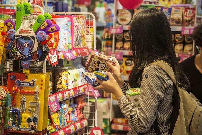 “我之前在朋友圈看到過新聞,說是里頭有不少網紅爆款產品,就抱著試試看的想法進去看看。”結果還真有驚喜,李爸爸看到門口的迪士尼貨架,從玩具賽車、泡泡槍、拼圖、魔方、毛巾、餅干,品種還真不少。
