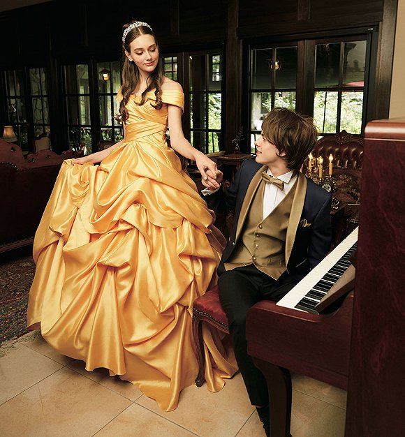 這些禮服簡直不能再美了,可惜迪士尼確認該系列只在日本提供。不過已經有那么多理由去日本旅游了,為何不去那里度蜜月呢?