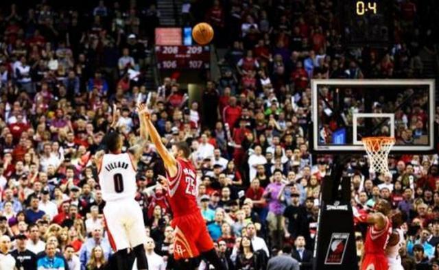 在14年季后賽中,火箭在最后0.9秒的時(shí)候還領(lǐng)先2分,但是利拉德在外線以一個(gè)高難度的三分球直接結(jié)束了火箭。他這記三分沒有任何的拖泥帶水,接球飄逸著就出手了,球進(jìn)的時(shí)候只有火箭隊(duì)員的無奈,就這樣他們被開拓者4-2淘汰出局。