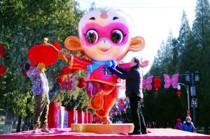 日前,第三十一屆地壇春節(jié)文化廟會(huì)吉祥物“吉祥金猴”正式亮相!凹榻鸷铩鄙泶﹤鹘y(tǒng)服飾,手拿紅色燈籠,位于公園西門(mén)!凹榻鸷铩痹O(shè)計(jì)造型是廟會(huì)組委會(huì)經(jīng)過(guò)兩個(gè)月的征集和評(píng)選,成為了猴年地壇廟會(huì)吉祥物。 北京晨報(bào)記者 李木易/攝