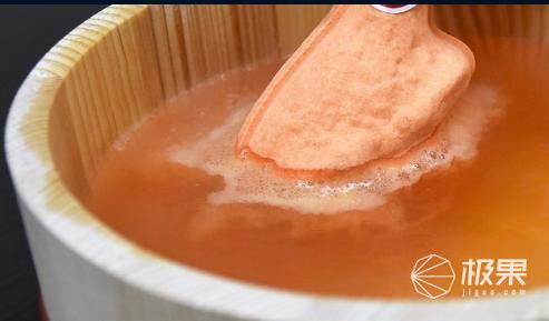 把這個(gè)原味雞香皂放到水里的一瞬間,馬上就產(chǎn)生了好多碳酸氣泡,是不是非常像在油鍋里炸雞腿?