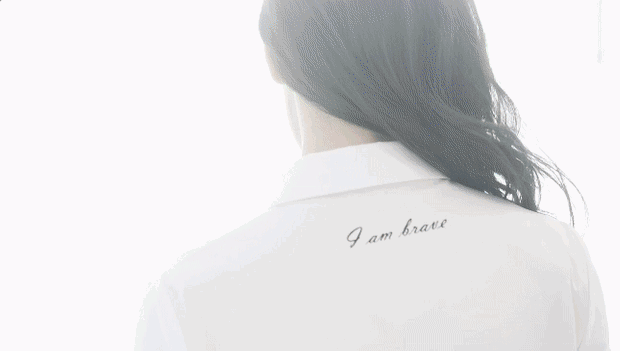 宋茜選擇了一身No.10白襯衫搭配條紋短裙,沒有過多的修飾卻顯得格外自信靈動。這件看似簡約的白襯衫實際上卻大有文章,宋茜在襯衫上選擇定制了一句英文刺繡:“I am brave”,通過襯衫表達自己的人生獨白。