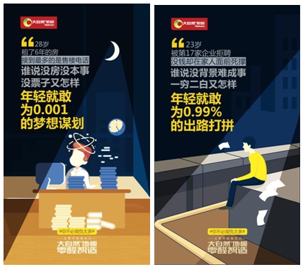 據(jù)悉,大自然家居深入90后年輕群體中,了解他們現(xiàn)實生活中面臨最大的負擔,通過系列海報的方式,提倡年輕人應該放下這些負擔,不要在乎別人的指指點點,要勇敢地堅守自我,完成自我的修行和圓滿。