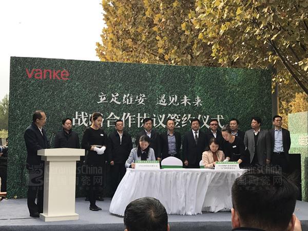 \u00A0 \u00A0 佛山歐神諾陶瓷股份有限公司以行業(yè)唯一代表及核心戰(zhàn)略合作伙伴身份,總裁陳家旺、營運副總經(jīng)理譚宜頌受邀出席雄安萬科建筑研究中心揭牌及萬科集團戰(zhàn)略合作簽約儀式,攜手共同參與雄安新區(qū)千年大計、國家大事的建設中。
