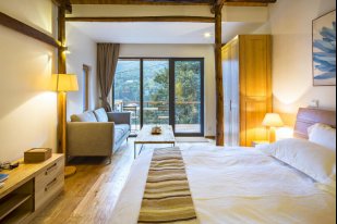 \u00A0 \u00A0 莫干山“大樂之野”民宿,通透落地玻璃,原木質(zhì)感的日式簡(jiǎn)約設(shè)計(jì),村野山色盡入眼。