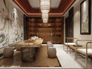 (茶室設(shè)計(jì),地面采用歐神諾“印度紫檀”木地板)\u00A0