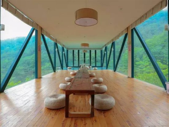 \u00A0 \u00A0 位于什邡市的“隱廬”取自“大隱隱于市”和“結(jié)廬在人境”的歸隱寓意。這里還有一個(gè)懸空17米的網(wǎng)紅茶室,整個(gè)茶室的地板都是透明玻璃。坐在上面喝茶,有一種隱世山林,騰云駕霧的感覺。
