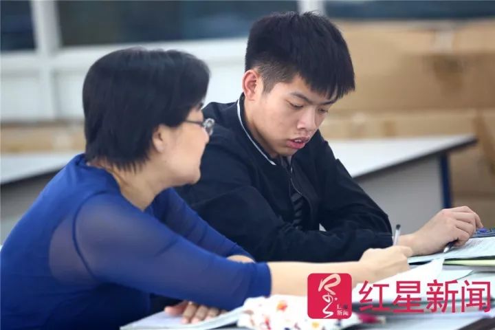 26日,學(xué)校安排的一位老師對(duì)梁智濱進(jìn)行考前輔導(dǎo)。圖片來源紅星新聞