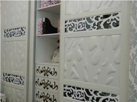 產(chǎn)品介紹:這款在中國市場上全新推出的衣柜新品,不僅在衣柜門中融入了皮革設(shè)計(jì),而且添加了眾多獨(dú)特、時(shí)尚的元素,移門上的立體軟雕工藝,開創(chuàng)了行業(yè)先河。產(chǎn)品在抽屜面板上也采用了行業(yè)獨(dú)創(chuàng)的皮革鑲嵌技術(shù),在優(yōu)雅的皮紋上鑲?cè)肓司碌膱D案,并以金色線條繡邊裝飾,異常獨(dú)特。而且小到皮紋上每一根線的縫合都非常細(xì)致,用手去觸碰可以感覺到質(zhì)感非常好。