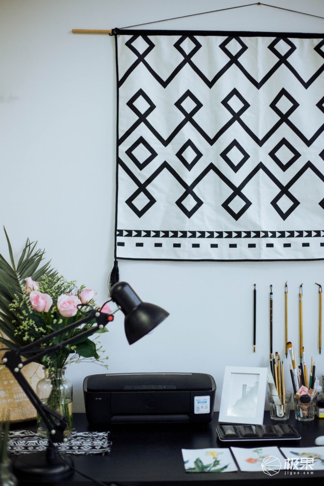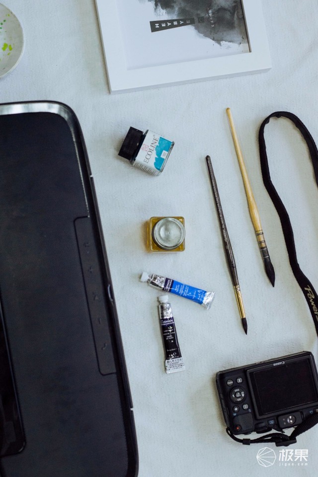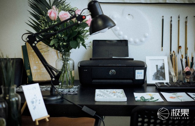 平時(shí)畫(huà)畫(huà)的時(shí)候要放調(diào)色盤(pán)、顏料、畫(huà)紙還有畫(huà)筆等等繪畫(huà)工具,其他兩臺(tái)打印機(jī)都沒(méi)法安置在這張1.5米左右的工作臺(tái)上,實(shí)在太占空間了,但120就算是工作狀態(tài)把進(jìn)紙盒出紙口全部打開(kāi),也并無(wú)大礙。