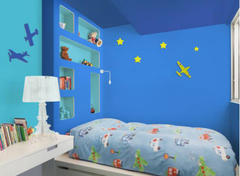 深藍色代表著自由、聰明、寧靜,純凈的顏色讓寶貝在小小的兒童世界里充分釋放孩子的天性,個性化的配色與明亮鮮艷、高飽和度的色彩一起激發(fā)孩子的想象力和創(chuàng)造力。