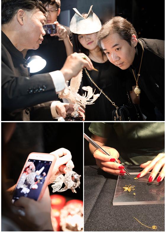 此次展覽專門面向喜愛珠寶文化、喜愛傳統(tǒng)手工藝的特定圈層人士,進行了定向邀約。前來觀展的尊貴VIP們,不僅大飽眼福,而且還在試戴環(huán)節(jié)與這些“皇家珍品”來了個親密接觸。