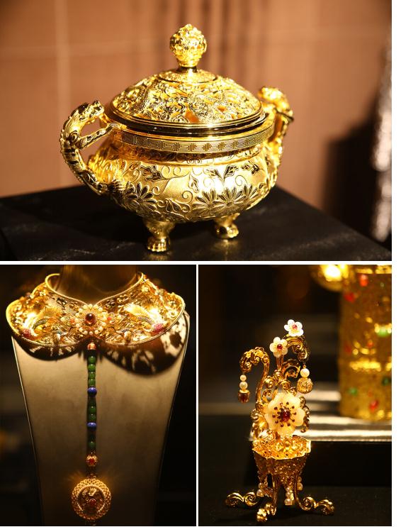 此次“周大福典藏珠寶藝術(shù)展”,在位于深圳周大福集團大廈11層的“名貴博物館”舉行。展覽展出的幾百件故宮文化珠寶,都是與故宮博物院合作,傳承自皇家的精湛技藝,由周大福悉心“復(fù)刻”而成。其中不僅有故宮珍品金嵌寶石鏤空花卉紋八方盒、金鏨花如意等精品,也有周大福自行創(chuàng)意設(shè)計的“故宮婚嫁系列”,每件珠寶的背后都有著與傳統(tǒng)文化的碰撞。