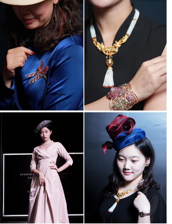 受邀參加的“YUN蕓”帽飾團隊,為呼應(yīng)展覽主題,特別挑選了數(shù)十款有傳統(tǒng)特色和復(fù)古設(shè)計的帽飾作品,現(xiàn)場與嘉賓進行深入互動。精美帽飾搭配收藏級的珍品珠寶,讓各位嘉賓瞬間體驗皇家的貴族氣質(zhì),也讓藝術(shù)作品的交匯璀璨生輝。