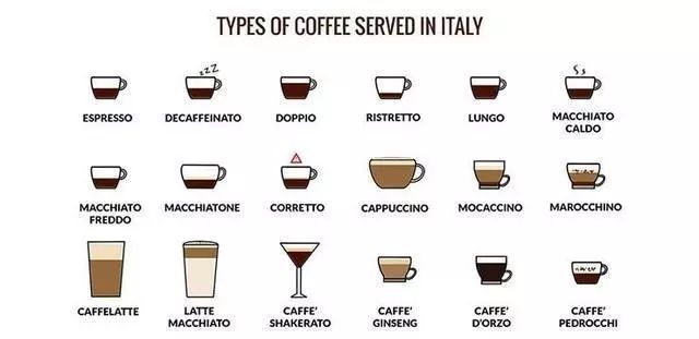 在意大利,Espresso=咖啡,種類繁多的花式咖啡=飲料。并且意大利人日常是不用Espresso這個(gè)詞的,他們一般直接說(shuō)caffè。另外咖啡通常是很便宜的,一般不超過15塊,比星巴克便宜近一倍。