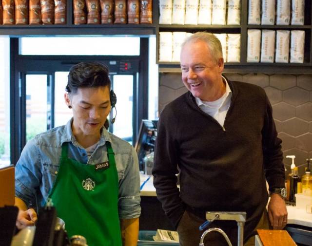 右:星巴克CEO凱文·約翰遜