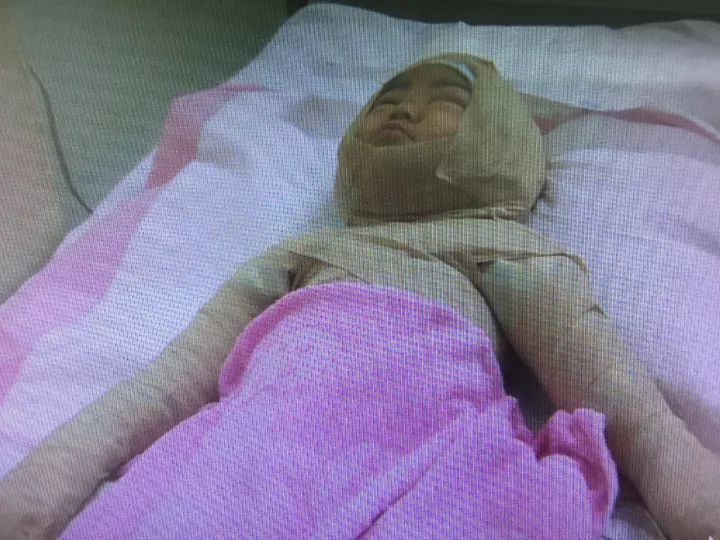 小佳琪的爸爸 盛勇:我老爸和老媽在炕上和孩子玩,孩子喜歡蹦蹦跳跳,一開始跳挺好,孩子離鍋臺(tái)挺近,一個(gè)沒注意,孩子就滑進(jìn)去了,臉扣到鍋蓋,直接就給悶里了。