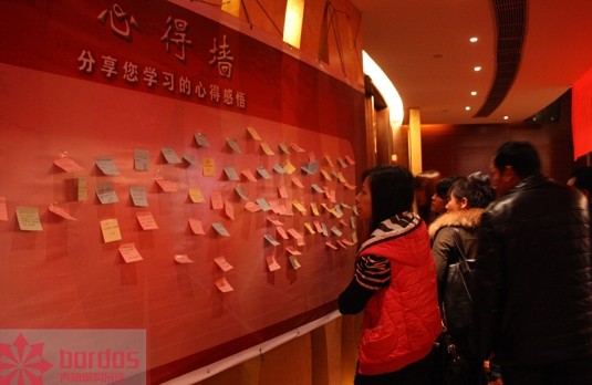 \u00A0\u00A0\u00A0\u00A0活到老學(xué)到老,我們的經(jīng)銷商朋友也是非常好學(xué)的,學(xué)完之后還細心的寫了學(xué)習(xí)心得,貼在會場劃分出來的小塊區(qū)域里,當(dāng)然也可以互相分享、互相學(xué)習(xí)。貼完之后趕緊整頓一下激動的心情,因為第二天會有更激動的事情來臨啊,那就是千島湖豪華一日游!游山玩水,吃新鮮水產(chǎn),累了還可以在超級豪華大游艇上休息休息,春光明媚,迎著碧水藍天,仰面輕輕呼吸,多么美好的生活啊!