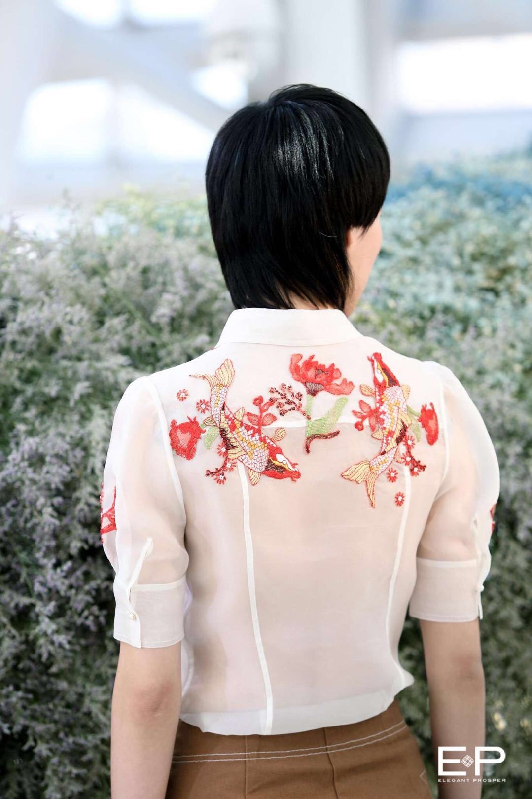 傳承工匠精神的刺繡工藝在新季系列也有顯眼表現(xiàn),珠繡、羽毛繡、密針貼布繡等傳統(tǒng)手工藝技法交疊穿插,花鳥魚蟲的故事元素躍然系列之中,每一處都唯美勾勒出東方園林的寫意美態(tài)。