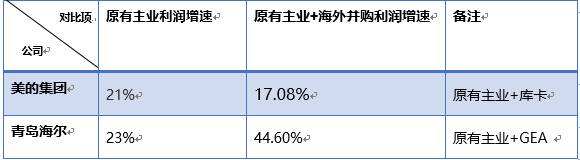 從數(shù)據(jù)上來(lái)看,根據(jù)分析師測(cè)算,剔除并購(gòu)影響,美的原有業(yè)務(wù)凈利增長(zhǎng)21%,加上庫(kù)卡后,增速就變成了17.08%,很顯然,美的盈利能力被庫(kù)卡拖累。而海爾原有業(yè)務(wù)凈利增長(zhǎng)23%,加上GEA后,增速變成了44.60%,可見并購(gòu)大幅提升了海爾盈利能力,二者差距非常大。