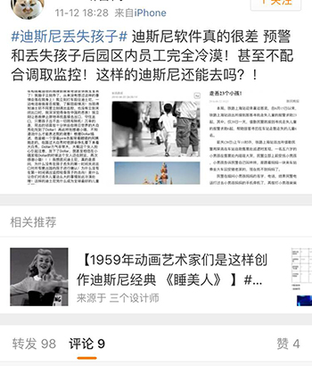 圖說:家長稱孩子在上海迪士尼樂園丟失。微博截圖
