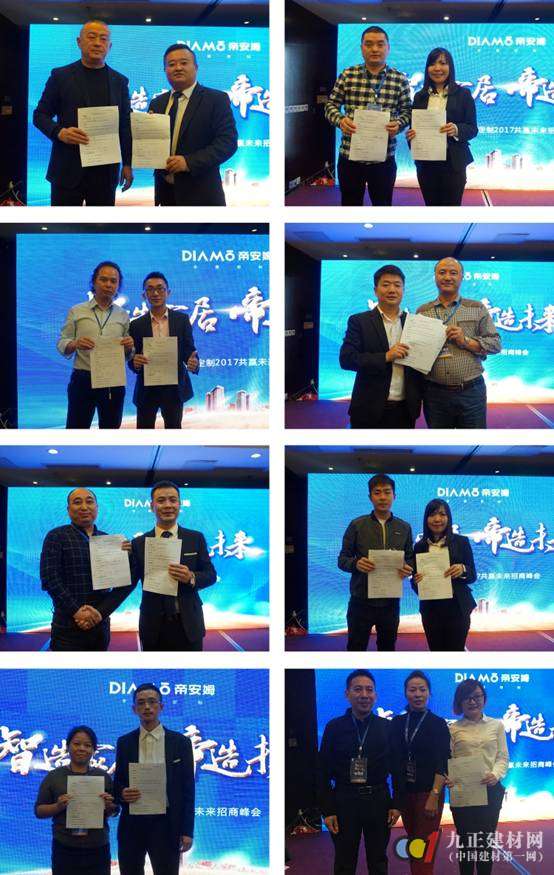 峰會現(xiàn)場,與會意向經(jīng)銷商對帝安姆紛紛給予高度評價,對帝安姆的綜合實力與匠心精神給予高度評價,并期待與帝安姆攜手前行,為更多的業(yè)主創(chuàng)造更美好的小資生活。峰會結(jié)束后,現(xiàn)場咨詢洽談,紛紛表達了強烈的合作意愿,簽約現(xiàn)場異常火爆,最后,帝安姆與16戶經(jīng)銷商正式簽約,為本次財富峰會活動畫下完美句號。